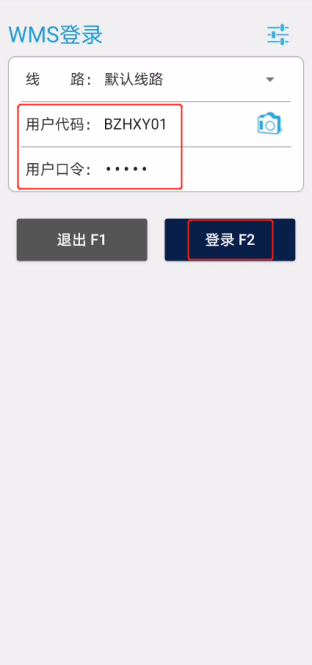 (1)The receiving team members click on the RF handheld terminal to enter into【WMS】system. When logging in for the first time, they need to enter the operator's user code and password to login to the system (Figure 1.2.5).