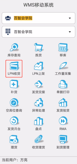 (2)Click on the home page to enter the 【LPN receiving】 interface (Figure 1.2.6).
