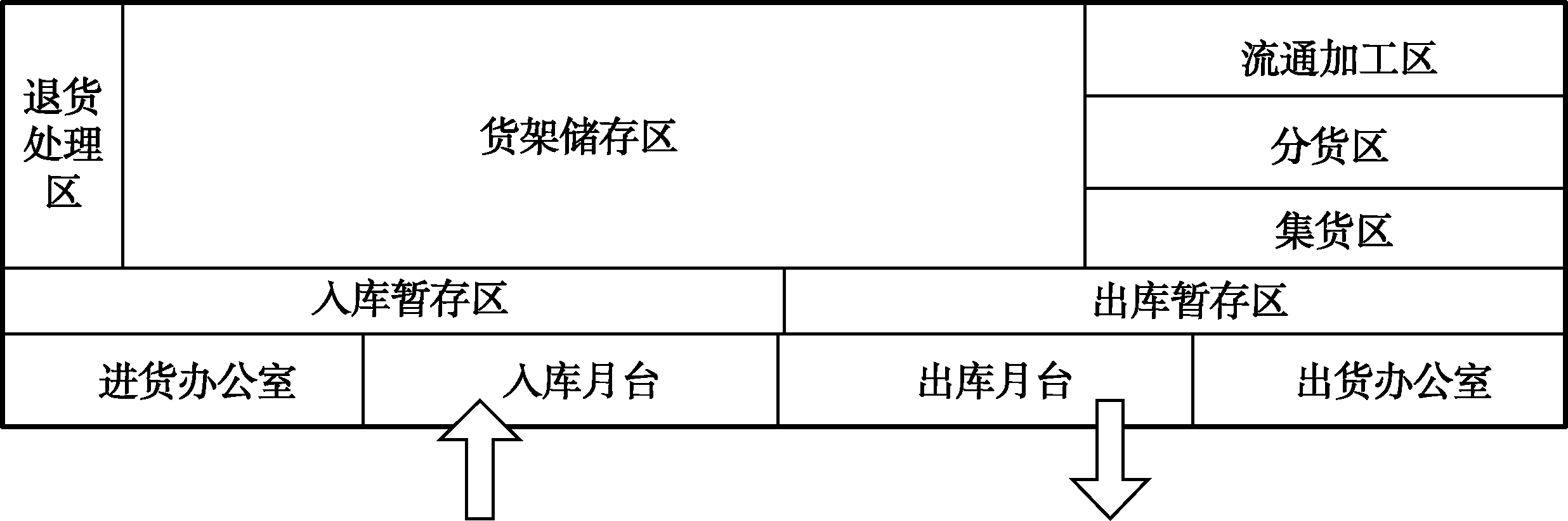 熟悉仓库内部的区域划分及其功能,有利于高效完成仓储作业。根据作业需要,仓库通常划分为多个功能区,最常见的有收货区、储存区、拣货区、流通加工区、发货区等(图1.1.3)。