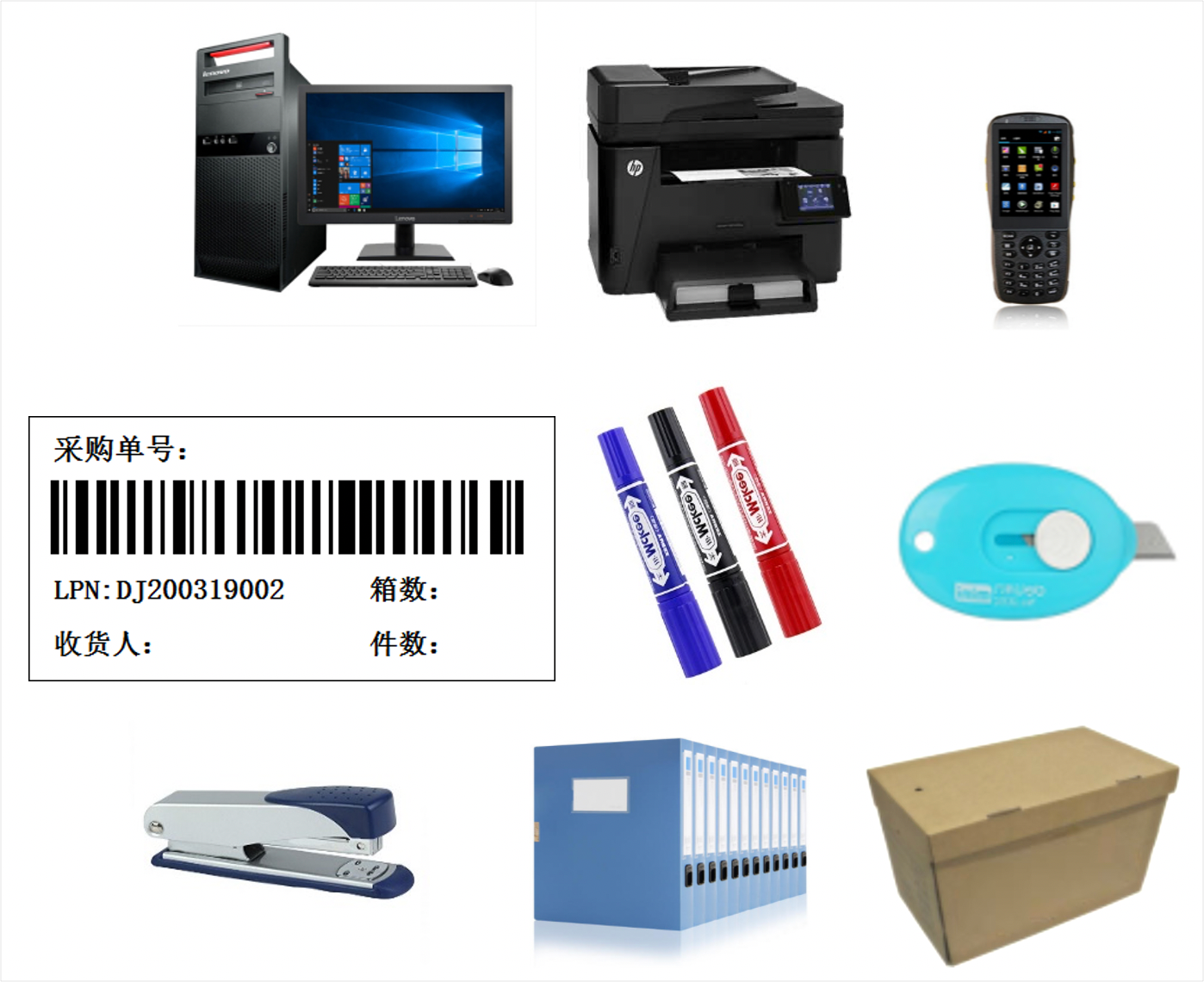 订书机、归纳盒、装单箱