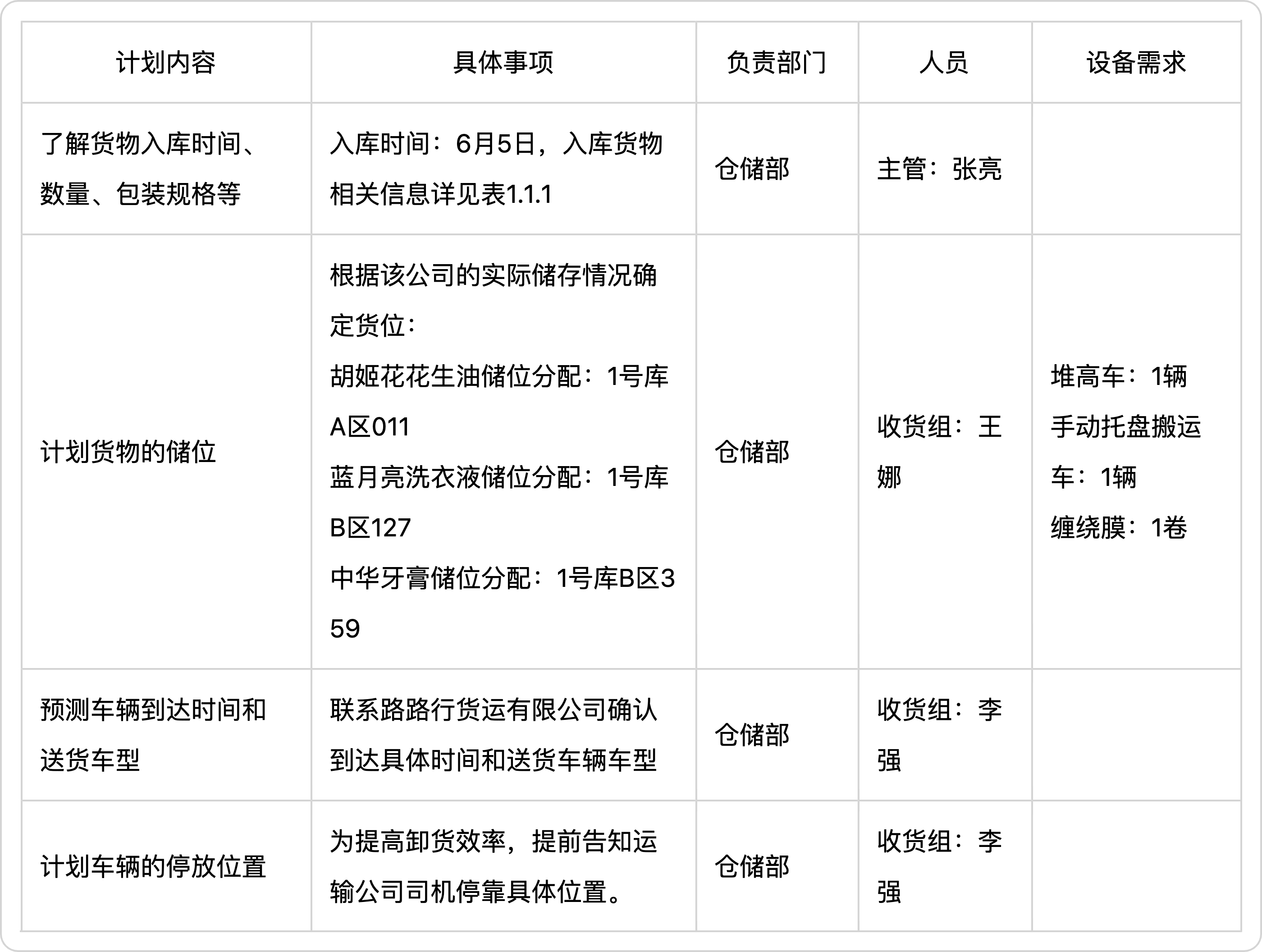 5.计划货物的临时存放地点。