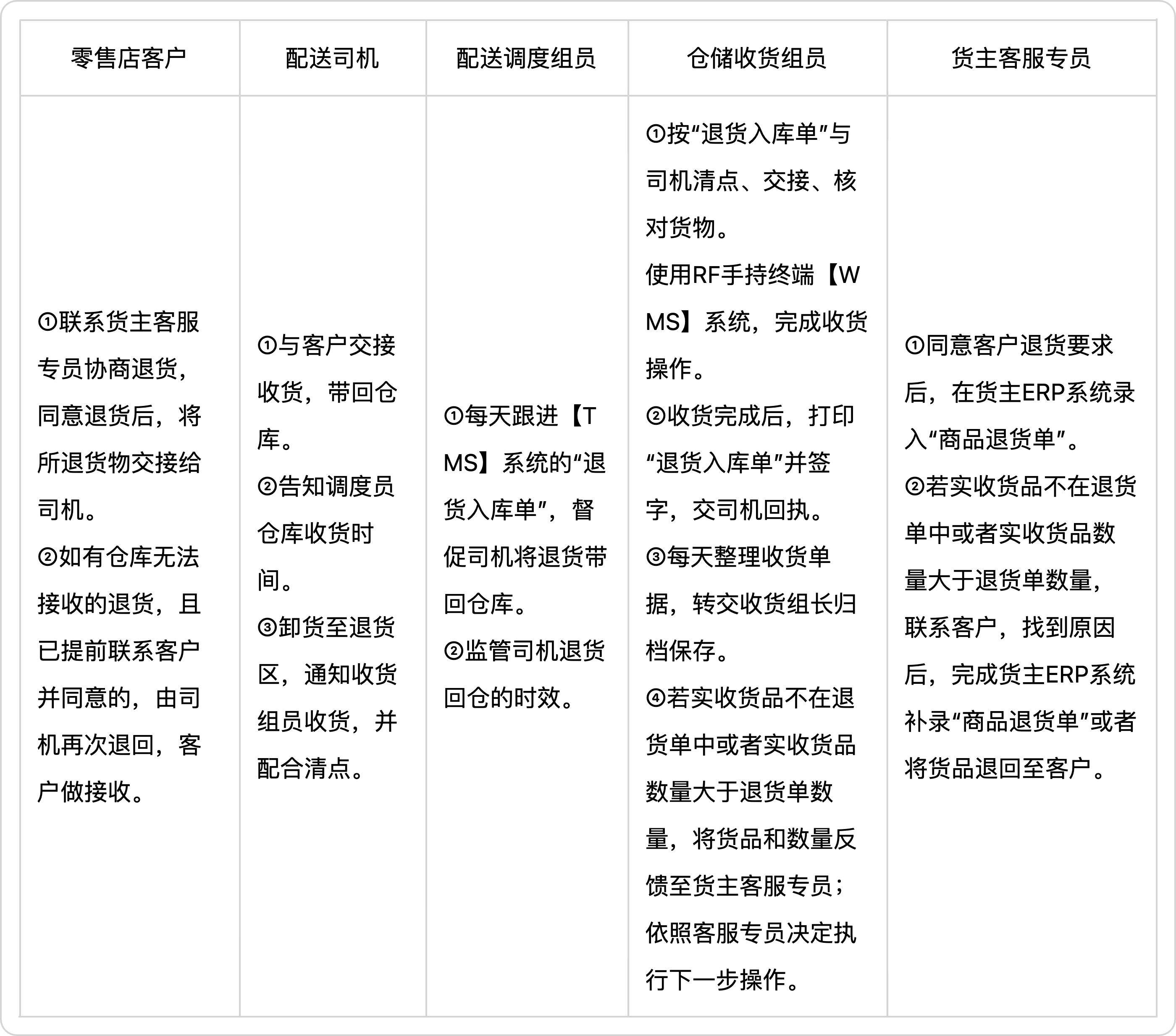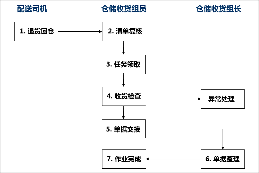 (3)码放好后由收货组员收货,司机将 “商品退货单”交给收货组员。