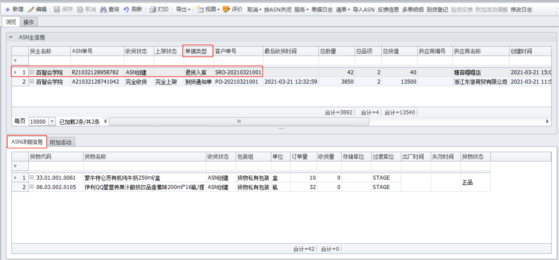 The receiving team members shall return and receive the goods in accordance with the return and receipt regulations, and need to pay attention to the physical goods and the details of the "return inbound list" of the [WMS] system (Figure 1.3.4).