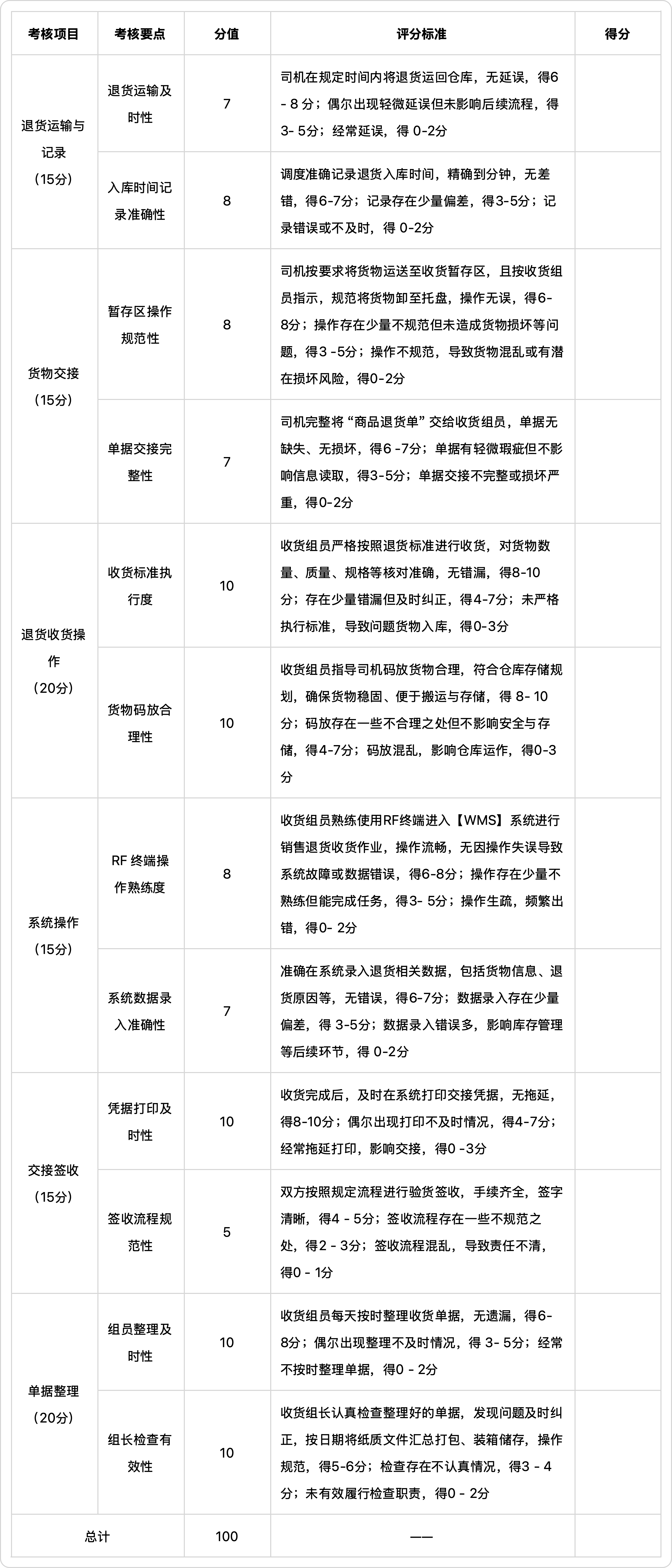 3.收货组员按照退货标准进行退货收货。