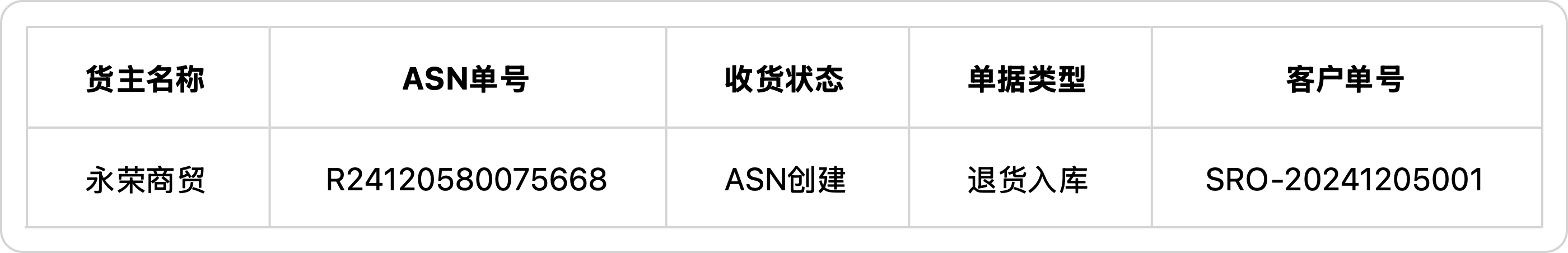退货入库单 return inbound document