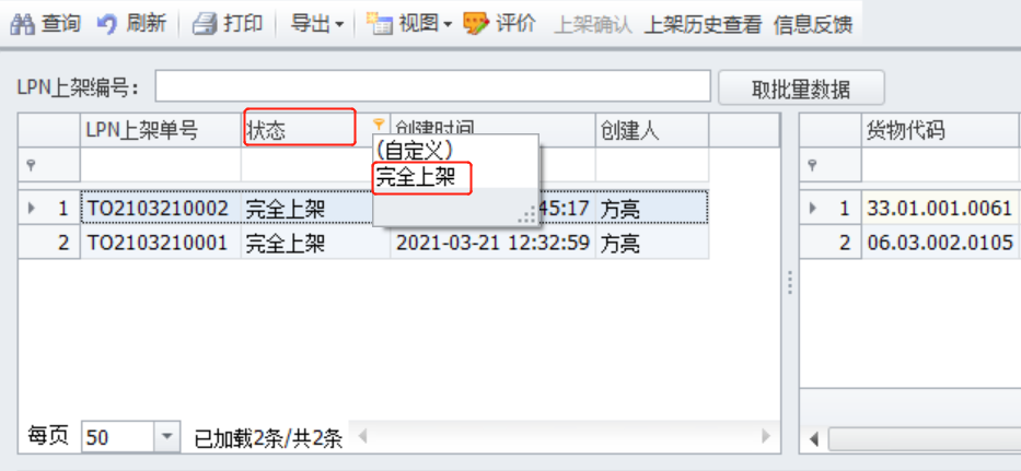 上架组长在当天上架作业完成后,进行上架单据状态检查。