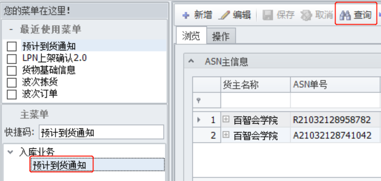 ① 在电脑端【WMS】系统中选择【预计到货通知】菜单(图1.4.19)。