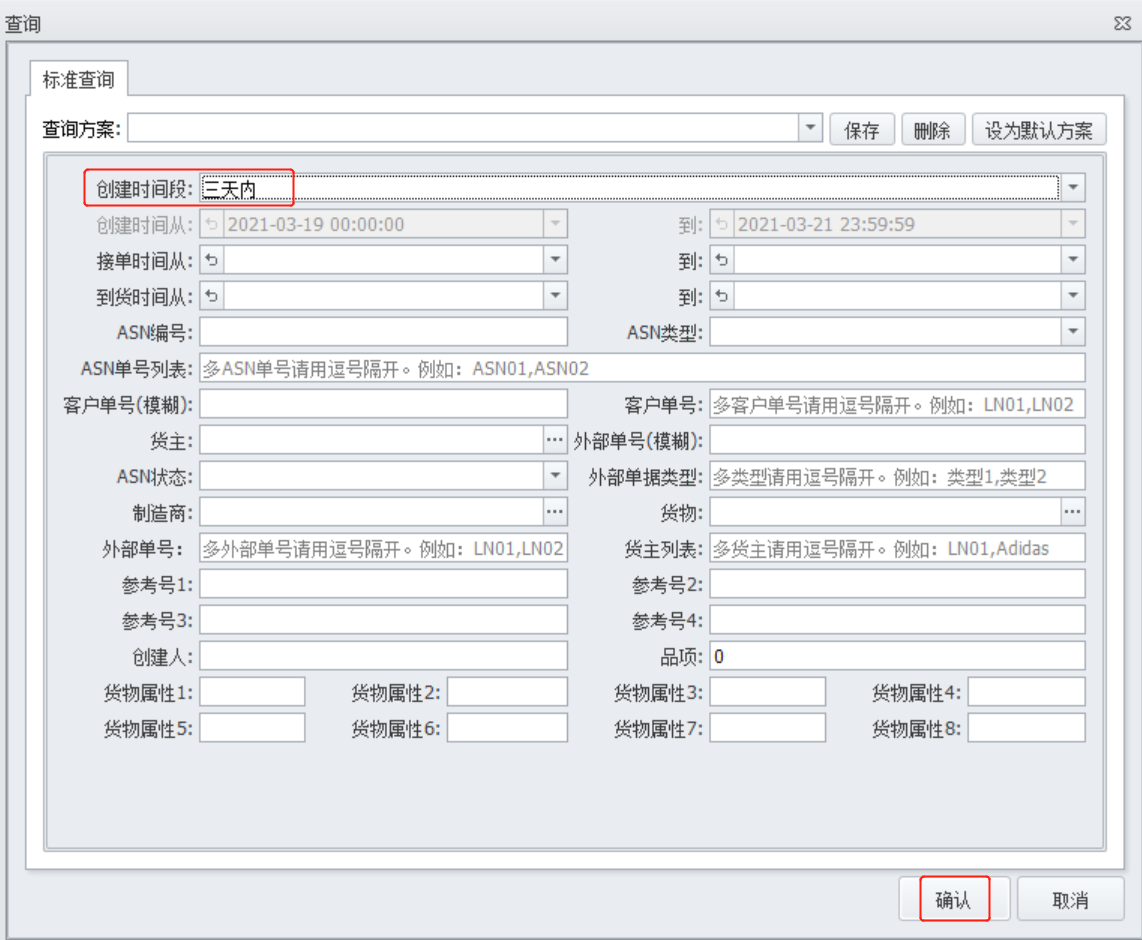 ② Select [Within 3 Days] in the creation time of the pop-up window, and click Confirm. Check the Receipt Status and Shelving Status in the query results (Figure 1.4.20).