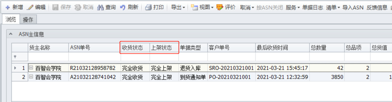 上架组长每天收货上架结束后,在电脑端检查单据状态。