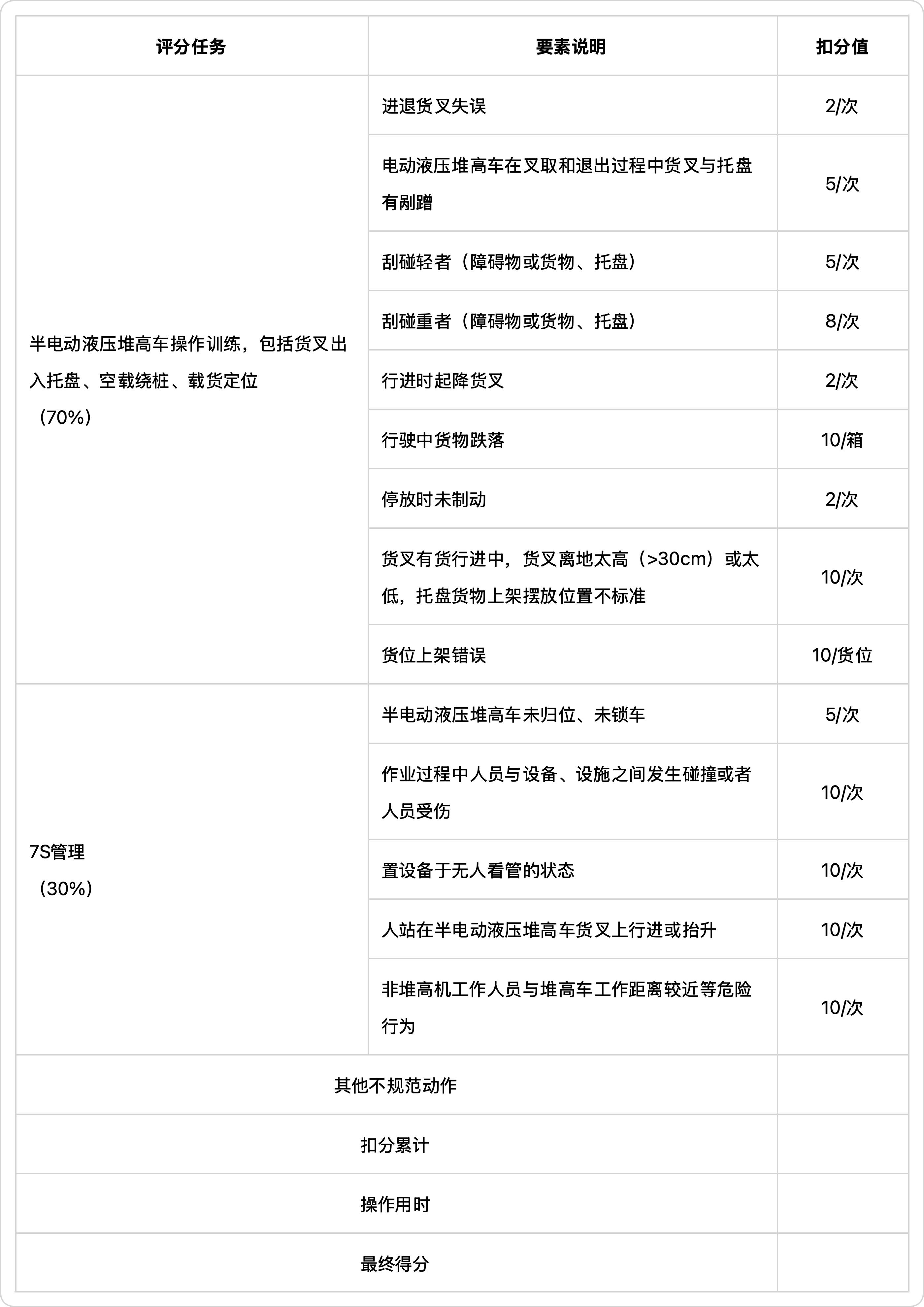 3.熟练操作托盘搬运车堆高车高位叉车等设备,按照标准要领进行货物上架实际操作。