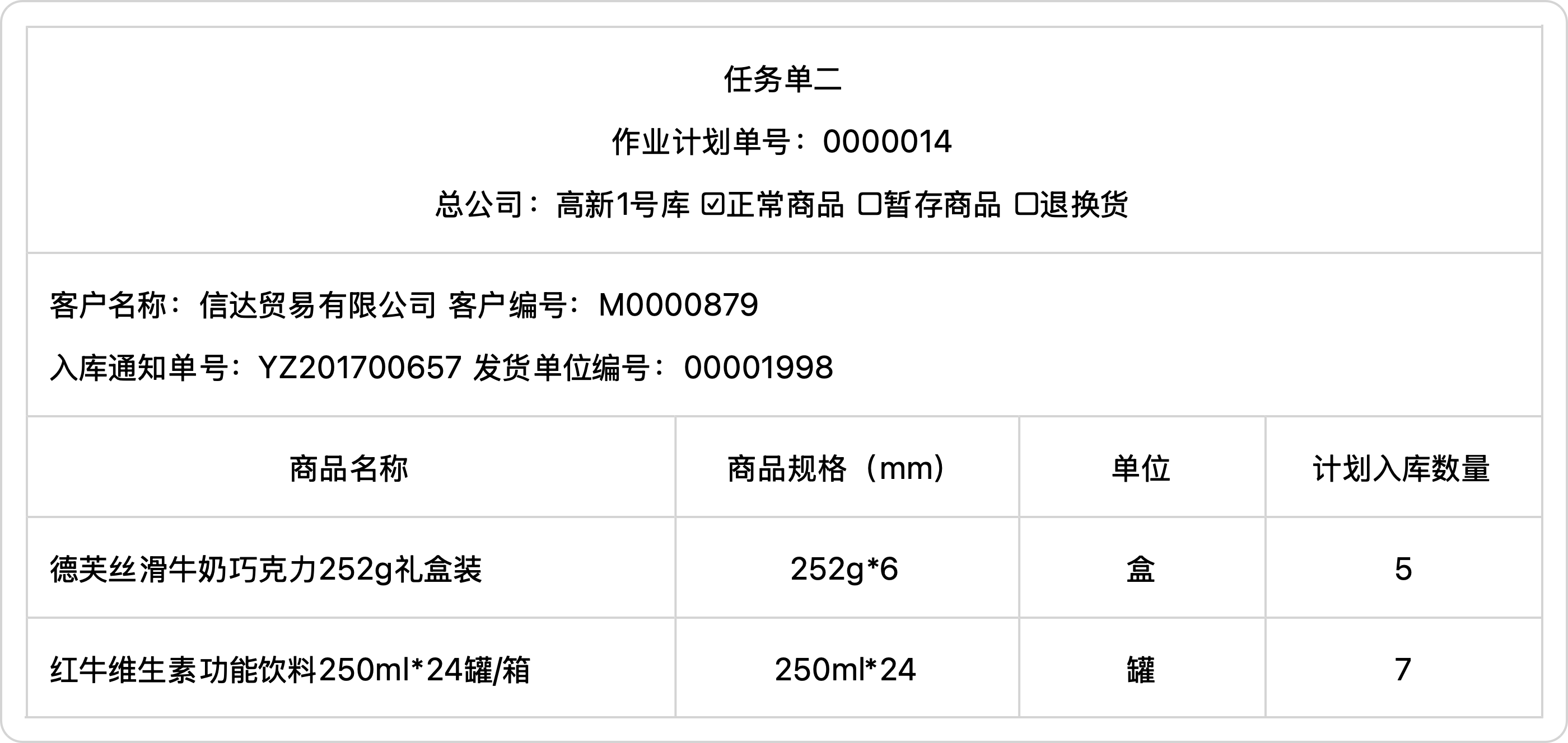 5.作业完成:上架作业完成并检查后,入库作业完成。