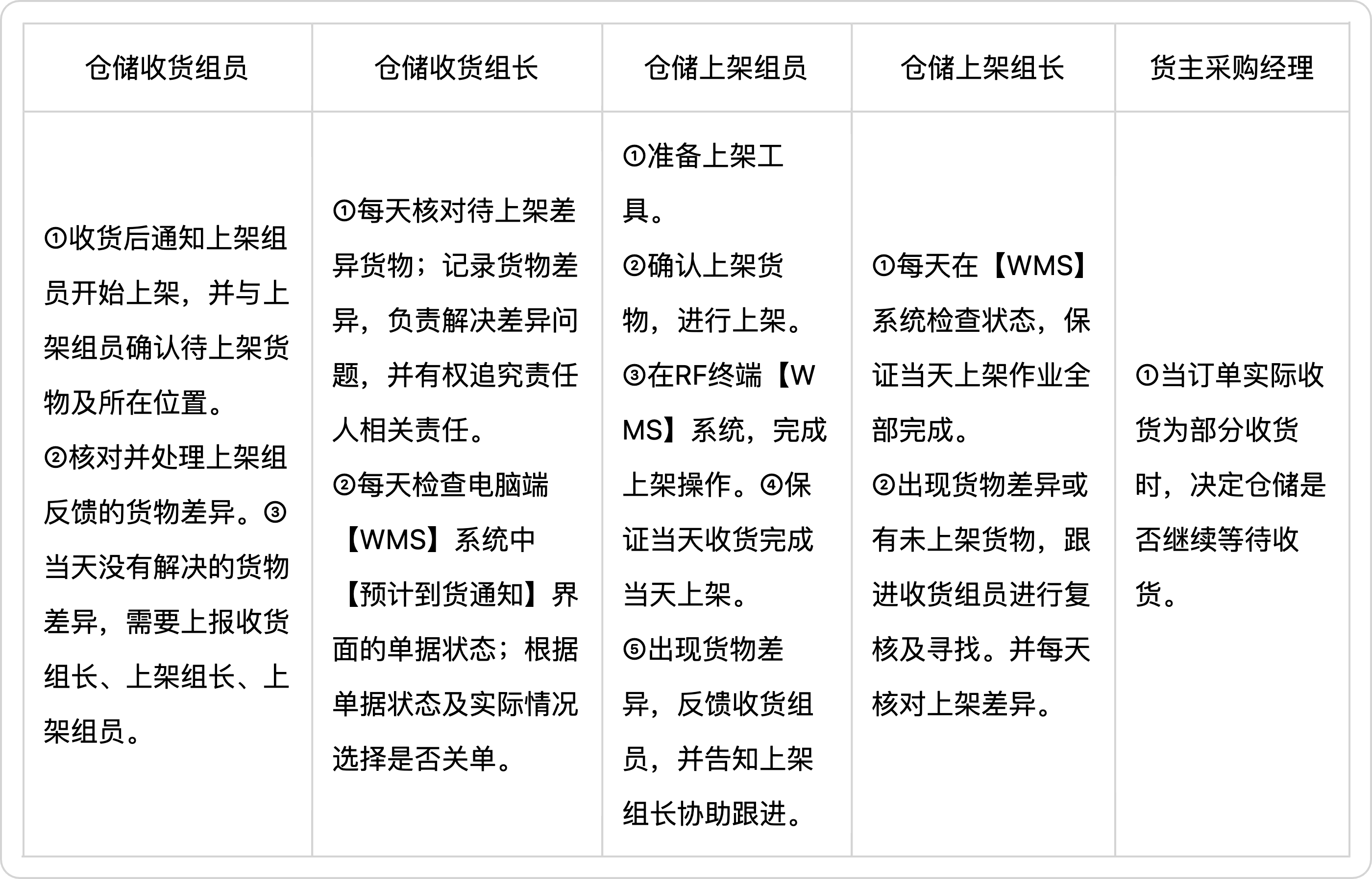 5.任务跟踪:上架组长每天跟踪【WMS】系统上架工单的【上架状态】,保证当天所有收货【全部上架】。
