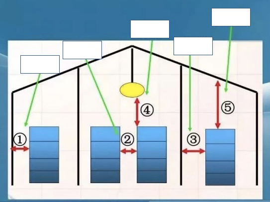The "five distances" of the stack refer to the distance from the wall, from the column, from the top, from the stack and from the lamp, that is, the stack can not lean against the wall and the column, the stack can not be squeezed too tightly, and the stack can not be connected with the roof and lighting equipment, without spacing.