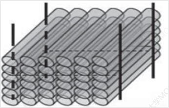 纵横交错式。每层货物都改变方向向上堆放。适用于管材、捆装、长箱装货物等货物。该方法较为稳定,但操作不便。(图2.1.2)