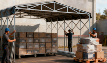 (4)活动棚苫盖法。将苫盖物料制作成一定形状的棚架,在货物堆垛完毕,移动棚架到货垛遮盖,或者采用即时安装活动棚架的方式苫盖。活动棚苫盖法较为快捷,具用良好的通风条件,但活动棚本身需要占用仓库位置,也需要较高的购置成本(图2.2.4)。