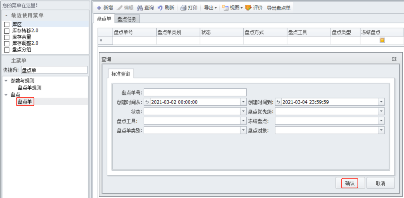 1.熟悉【WMS】系统中创建【盘点单】的具体步骤。